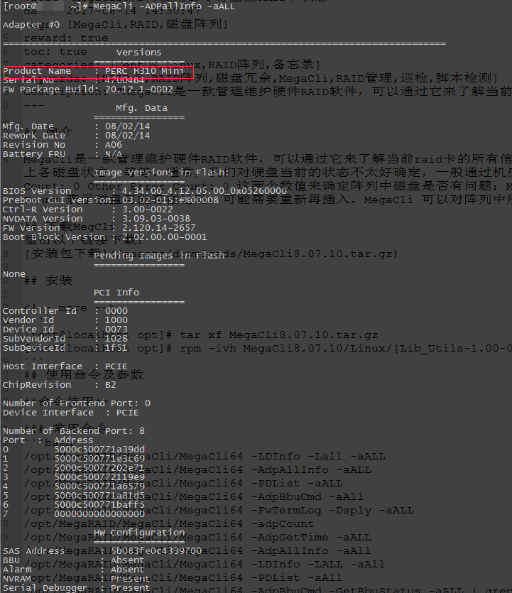 主要输出RAID卡的一些配置信息