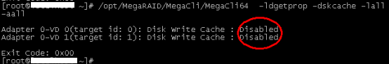 1 2 3 4 5 MegaCli -LDGetProp -Cache -L0 -a0 MegaCli -LDGetProp -Cache -L1 -a0 MegaCli -LDGetProp -Cache -LALL -a0 MegaCli -LDGetProp -Cache -LALL -aALL MegaCli -LDGetProp -DskCache -LALL -aALL
